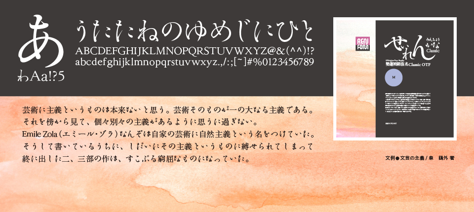清明かな・靜呉竹・勢蓮明朝Classic・勢蓮呉竹Classic・勢蓮明朝Old・奔行Std・松葉Std・松葉TTF = 文芸の主義 / 森鴎外