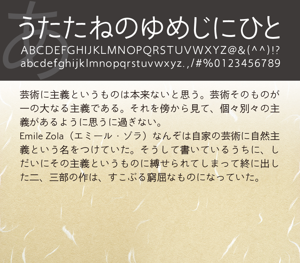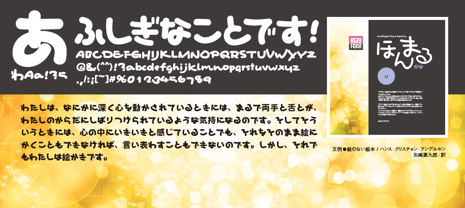 ほんまるかなOTF = Rounded M+ 1c-thin / M+ FONTS, DF 新細丸ゴシック体 Std / ダイナコムウエア株式会社, A-OTF じゅん Pro-101・A-OTF 新丸ゴ Pro-R・M・DB・平成丸ゴシック Std-W8 / 株式会社モリサワ, FOT-スーラ Pro-M・DB / フォントワークス株式会社